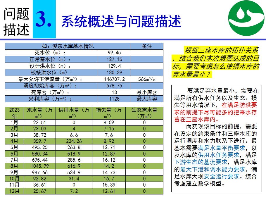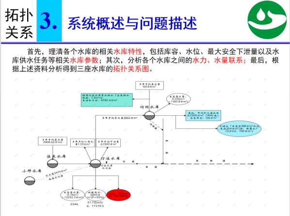 正是基于這樣的現(xiàn)實痛點,國水水務啟動汀溪水庫群優(yōu)化調度課題研究,試圖以技術創(chuàng)新打破傳統(tǒng)調度的瓶頸。交流會上,國水水務技術團隊詳細介紹了課題的核心研究思路:首先通過梳理汀溪水庫群中汀溪水庫、溪東水庫、竹壩水庫的拓撲關系與水文數(shù)據(jù),明確各水庫的功能定位與約束條件;隨后結合歷史水文數(shù)據(jù)與區(qū)域用水特征,構建涵蓋“水文預報誤差、需水波動、發(fā)電負荷變化”的多約束模型,并引入遺傳算法進行求解,最終實現(xiàn)“在保障防洪安全的前提下,******化減少棄水、提升供水保障率與生態(tài)流量滿足度”的目標。
